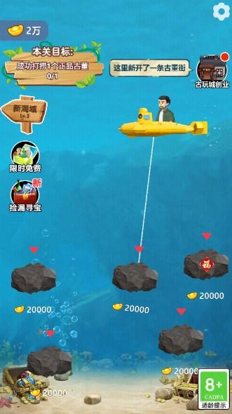 乘坐潜水艇去往深海,一堆看似朴实无华的石头,究竟藏着什么古董?勇闯侏罗纪、探索亚特兰,多样惊奇海域等你冒险;慧眼识珠、买定离手,我看中的东西不会出错!小心三位土豪老板,如果给他们发现这是件赝品,可能会血本无归喔!快来试试吧,古董大佬就是你!