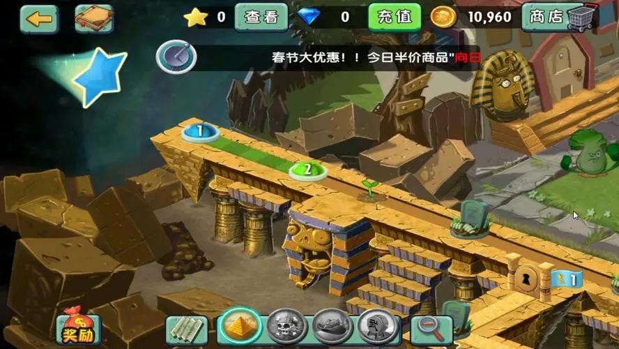 神秘埃及、狂野西部、海盗港湾、功夫世界四个地图,植物装扮功能,新的植物.