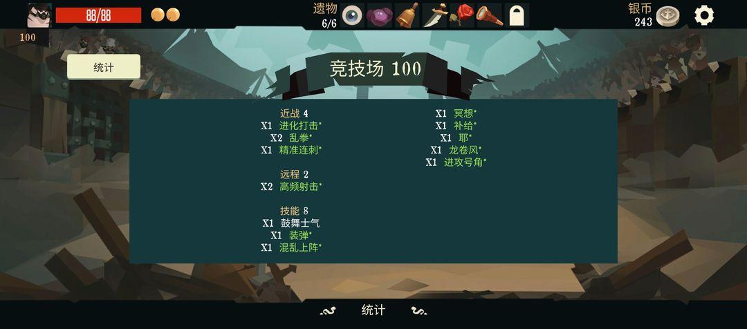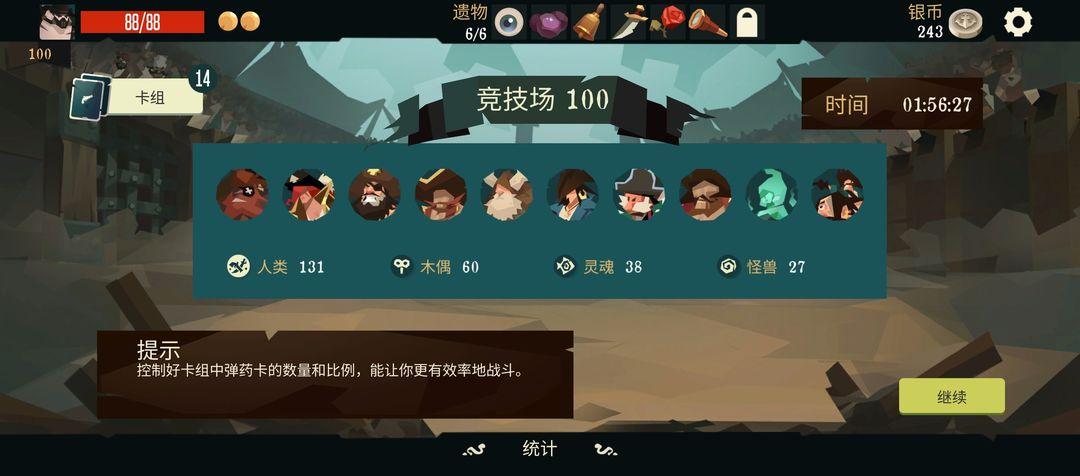 玩法的话感觉还是竞技场好玩,因为可以用全地图的东西,这样可玩性和无赖流就会比较多,但是要打完100层对于强度的要求还是有点高,除非玩老赖流。我打100层就是用的剑术大师的近战暴击(有弹药近战暴击,近战暴击加弹药,近战暴击加血)其他就拉拉伤害和保命续航,卡牌我建议带进化打击,白刃战,和刷自身状态的牌。
