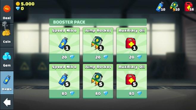 - 通过获得诸如硝基、火箭和辅助油之类的小工具来提高您的游戏分数