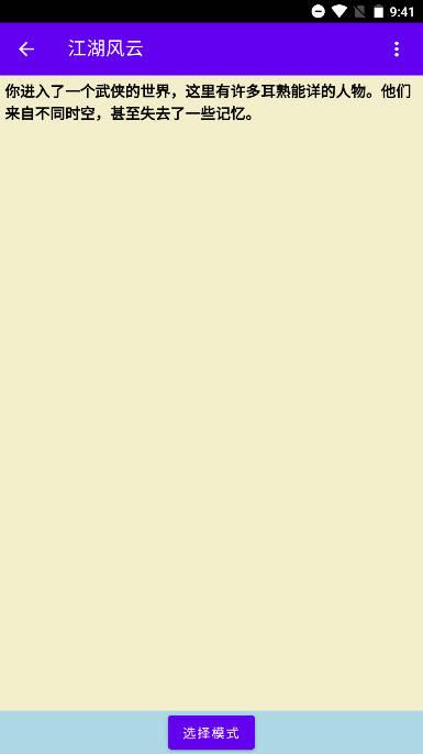 这是一款文字武侠风格的游戏,在这里面根据金庸小说改编的一个武侠风格游戏,你可以创建自己的角色,然后一步步养成自己的人物,战胜各种敌人,非常好玩!