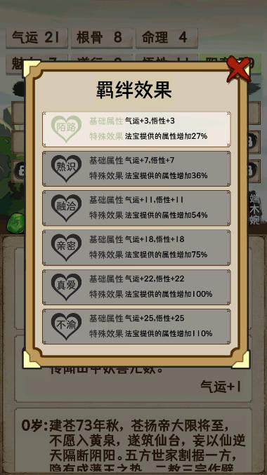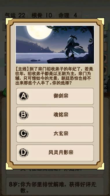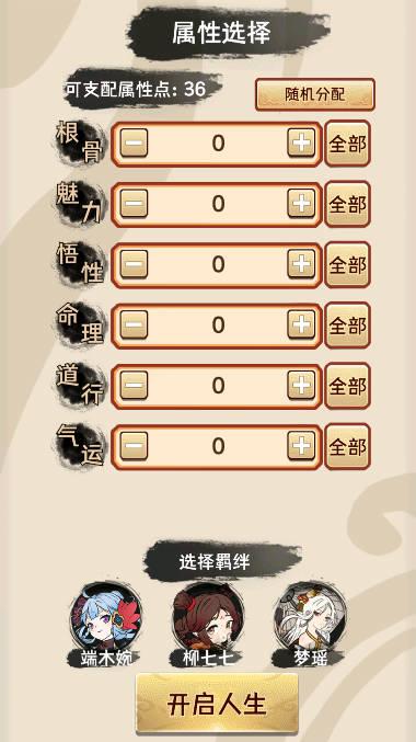 自由选择出身,体验不同的开局,可以是商人世家有金钱支援,亦可以是平民的地狱开局。还有属性点、道心值和天赋,供玩家分配。