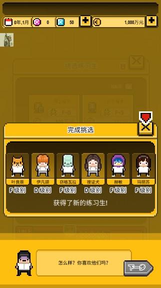 全民经纪人们,与你的偶像签订五年合约,请将ta们变成宇宙级顶级偶像吧!精心给娃们安排不同特长的专业培训,时不时拉出去溜两圈开个粉丝见面会增长知名度,当然唱片和演唱会也是必不可少的!同样重要的是,你不能忘了照顾好爱豆的身体,身体才是努力的本钱!