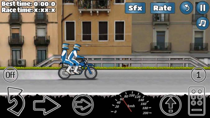 执行许多轮式技巧 -在 Wheelie Challenge 中,您需要尽可能长时间地执行 Wheelie,这样您就可以创造记录。这个游戏没有尽头,只要你能握住它,你只需要完成一个轮子。