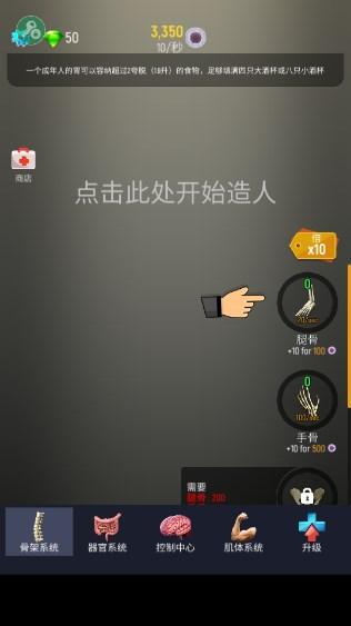1.点击创造人体,开始体验非常有趣的游戏,可以清楚地了解人体的结构