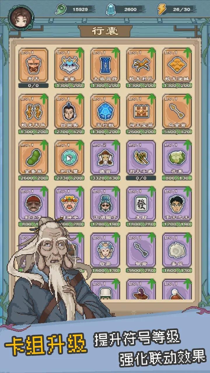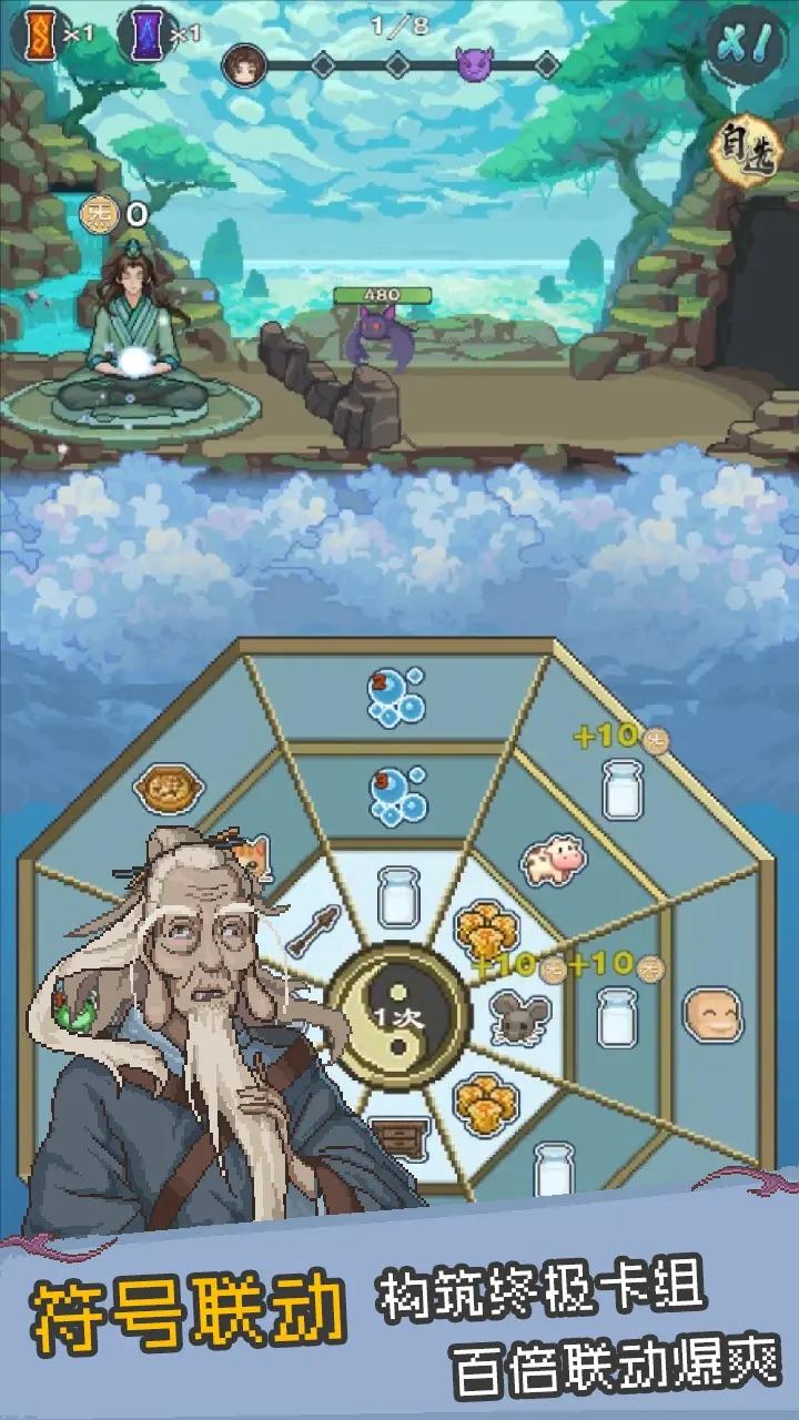 这是一款修仙像素风的卡组构筑类游戏,灵感来自于幸运房东。