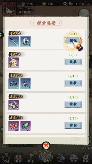 抽出乔帮主后,整理一下自己的侠客,如果没有法王白毛剑魔的,无限十连就优先刷白毛,如果有上述三个,无限十连就尽量刷200能量回复的,这个提升也很大,就一直耐心刷,最多可以出4红,但很少,一般3红且侠客满意就可以哦收手,至此前期的侠客获取就差不多了,这时候如果有没有剑魔白毛法王的就可以用乔帮主主C,基本多试几次就可以过200关,新手阶段就此结束。