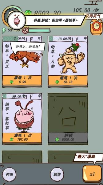 玩法:解锁仙草系统,主角需要消耗灵气来种植、解锁仙草。等仙草成熟后,可供吞噬,吞噬仙草可以大大提升修为!