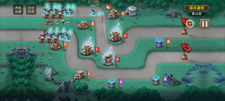 经典结合创新的炮塔塔防设定,将传统塔防中【单一静止】的防御塔转换成脍炙人口,让你眼前一亮的更具灵动的武将小人,和敌人中路对狙(bushi)