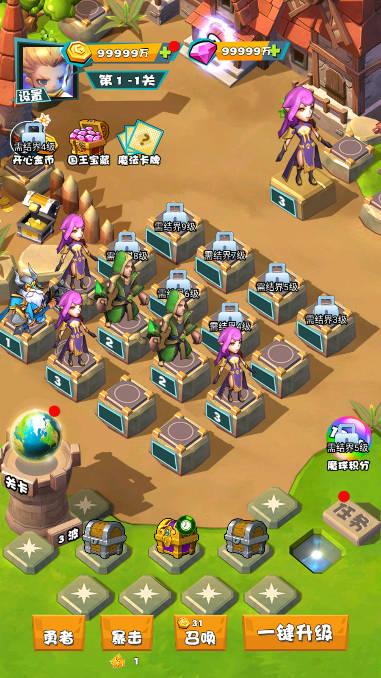 这是一款休闲合成玩法的塔防类型游戏,非常经典的放置功能和玩法,在这里加入了无限金币和钻石,你可以不断地召唤各种各样的英雄然后进行合成,可以来保护你的领土!