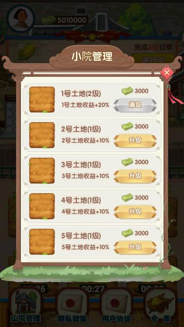 2.全新的山庄运营玩法等你参加应战,每天都会有不同栽培订单使命等你完结。