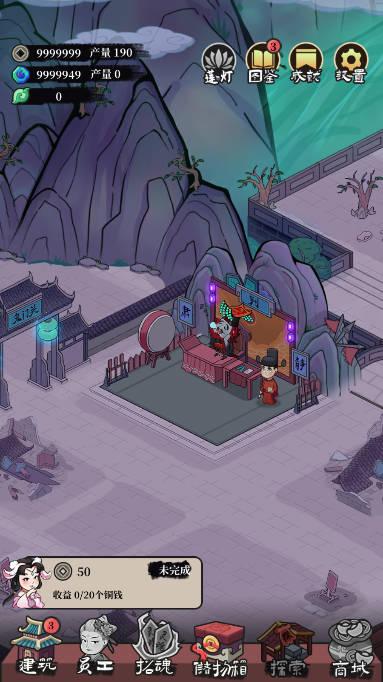 7、最终为了更多的运营鬼门关,你需点击阴间类修建上方气泡手机魂币,魂币可用于晋级阎王殿和购买特别物品。