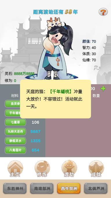 天庭的猫:为感谢广大修仙者的支撑【千年蟠桃】今天打折促销。