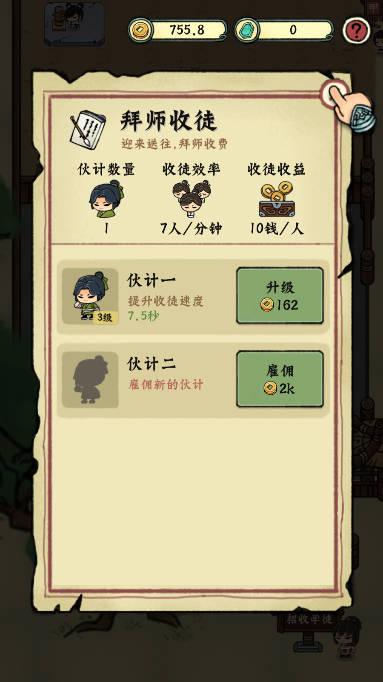 学员历练探究,发现种种宝物提高收入和武馆声望