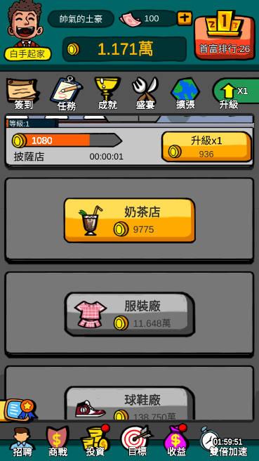 这是一个经商类型模拟游戏,动画风格,在这里玩家成为首富,你的财富非常多,但是需要玩家不断地做生意来维持,不能破产哦,非常真实的玩法和体验,解锁无限金币。