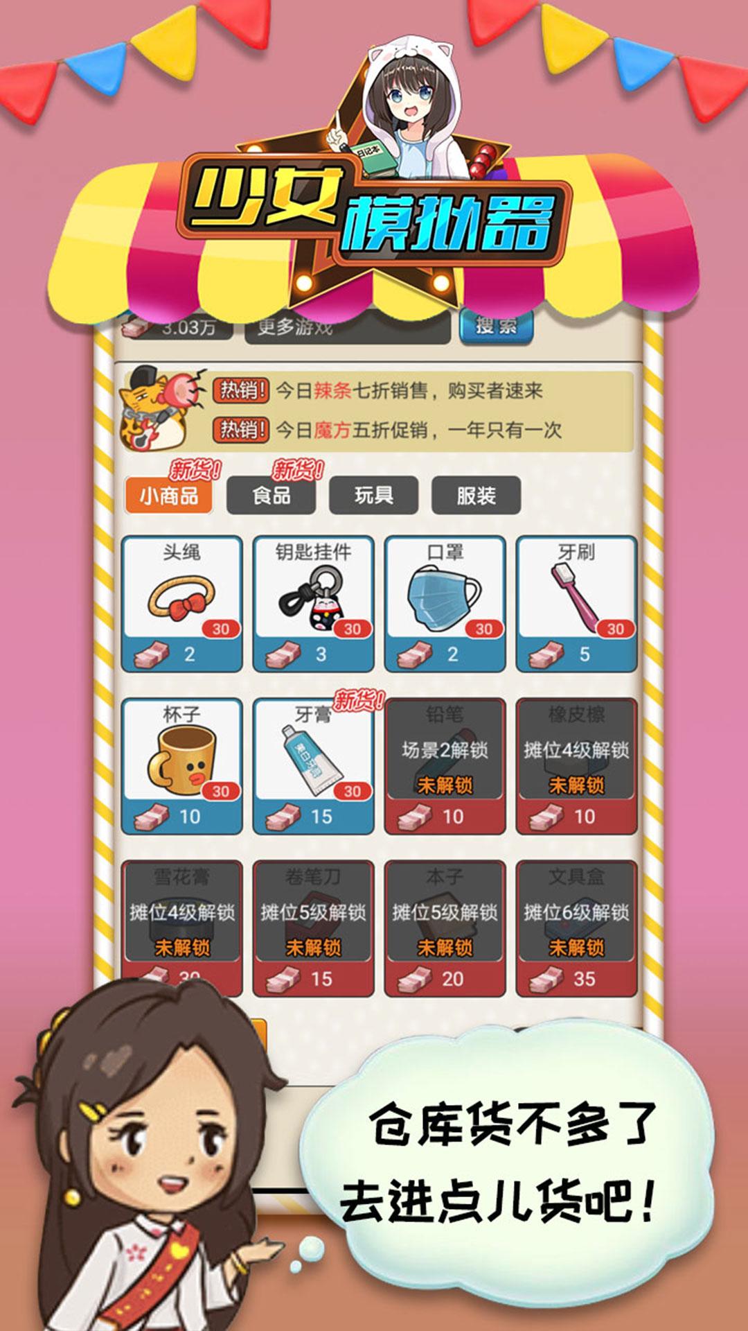 这是一个非常好玩的经营模拟摆摊类型游戏,在这里玩家模拟摆地摊,你需要不断地进货,满足各种顾客的需求,在这里提升自己的做生意能力,吸引更多的顾客前来消费,非常好玩!