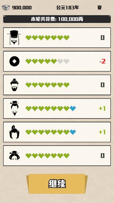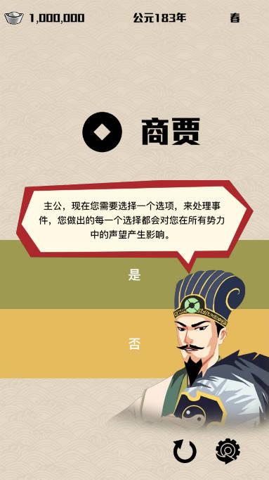是一款非常好玩有趣且以三国时期为背景的文字策略类游戏,在这个游戏里玩家将要来到三国时期,成为一名割据一方的主公,而你需要做的事情就是平衡六大势力,它们分别是士族、商贾、将士、宗亲、百姓,还有你的后宫,或许大家会问为什么要平衡呢?因为一旦某一方的势力得到的福利不够好,那么就可能造反,使你失去主公的身份,所以当你面对选择的时候,还请多多思考,不要盲目行事,导致平衡被打破。