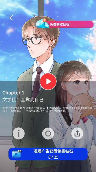 游戏是免费的。可是,如果你付一点钱,你就可以和你心爱的年青男友一同观看更多甜蜜欢喜的剧集!