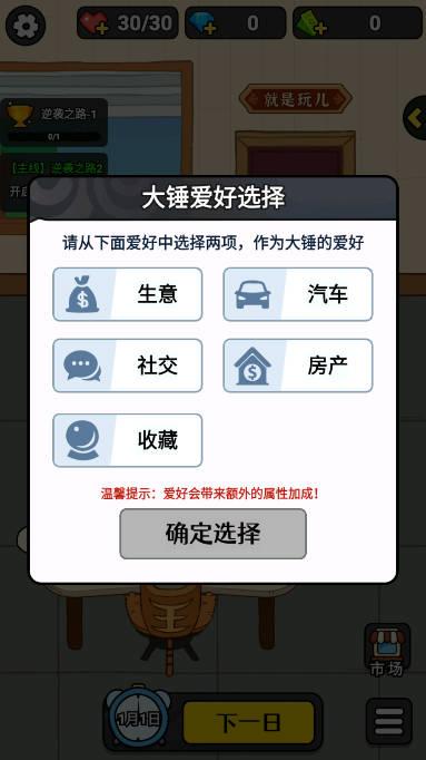 是一款全新好玩的模拟经营类游戏,此版本已破解免广告获得奖励,游戏中你将选择自己的人生之路、属性,你将刚开始的一名无名小卒,一步一步奋斗,最终成为顶级富豪的故事,各种各样的玩法都是很有趣的,在这个游戏中,玩家将从底部开始,然后逐步上升。通过自己的努力,他们将实现人生的逆袭,然后登上人生的巅峰,创造一个新的天地,这是最有趣的地方。