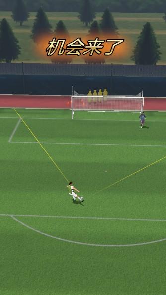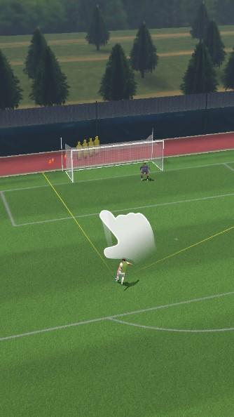 1、游戏的开始会有简单的新手指导,玩家需要根据屏幕上出现的三角区域,制作出最好的踢球抛物曲线,确定好抛物曲线之后,就在三角区域用手指滑动一条白色的实线,这样后面运动员就会根据这条曲线去踢球过去。