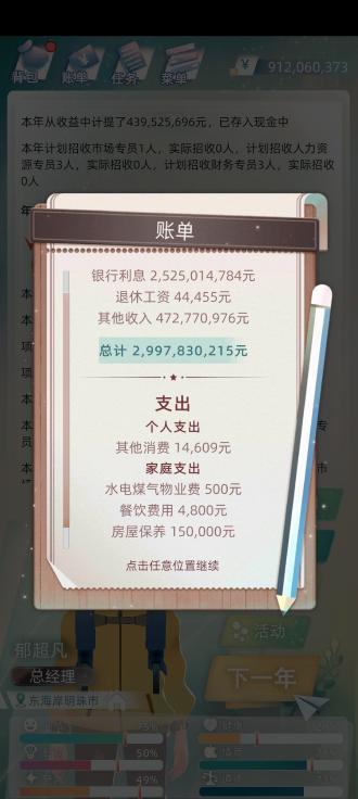 对于文字模拟类型的游戏之前也是有一段时间大火过,并且这种类型的游戏可以说现在也是比较多,但是很少有同类型游戏做的怎么丰富。在这款游戏当中玩家可以说真正的呢体验到一个不一样的人生,好像玩家有了一次重新选择的权力。当然在这款游戏当中需要注意的地方还是比较多,在游戏当中以一年为界限,我们需要先完成这一年当中的各种事件,才能点击到下一年当中,所以对于刚开始玩的玩家这个地方还是需要去注意一下的。同时在这款游戏当中个人觉得广告还是有一点点的多,其实这个问题可能很多玩家还是可以理解的,但是在这款游戏当中进行下一把游戏的时候就会让玩家强制看广告,这个真的有些影响玩家玩的心情了。这款游戏整体来说还是非常不错的,非常值得玩家体验。