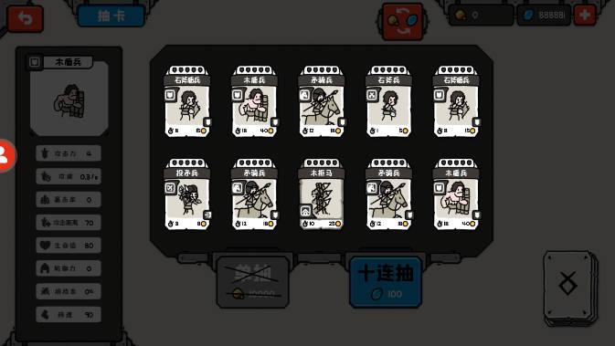 好在这款游戏的福利非常良心,刚玩游戏就能看见邮箱里面大把大把的奖励,过来就送八万金币,虽然说只能一发一发的抽,但是还送了额外的350钻石,我们的小钻石100钻石直接十连,开局送30连,一发下去也不知道哪个牛掰,目前我抽到最高的星星只有三星,其他的都不知道是什么东西,进入游戏后,也是一脸懵逼,都不知道怎么玩,希望作者后续良心点,整个教程吧~