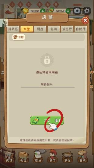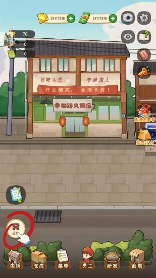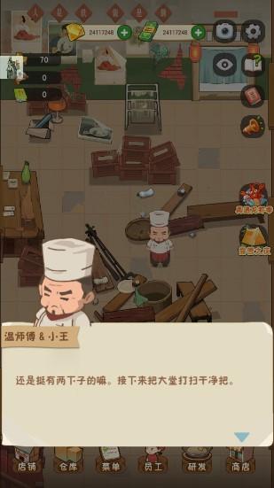 1.游戏开局有一段简单的剧情,大概就是玩家收购了一家铺面,开火锅店,然后有一位老师傅作为厨师,帮助我们把这个店开起来。