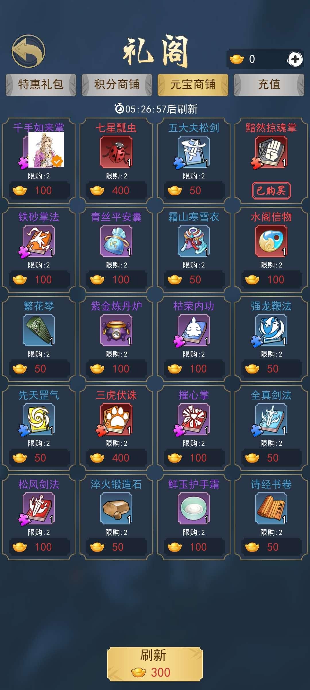 5、游戏中选秘籍,能不能刷秘籍的时候弄个提示,玩久了还好,前期真的容易弄混秘籍的档次,比如那个独孤九剑,一开始以为是传说的,结果刷到钱没,后面才知道是神话。这种情况应该不止我一个吧?可以把未有秘籍的第一个字弄成相应的颜色之类的。