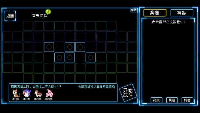 战斗中放置你所需要使用到的英雄,不断地击败敌人、选择发展方向、增强英雄属性、迎战更强的敌人、获得胜利!