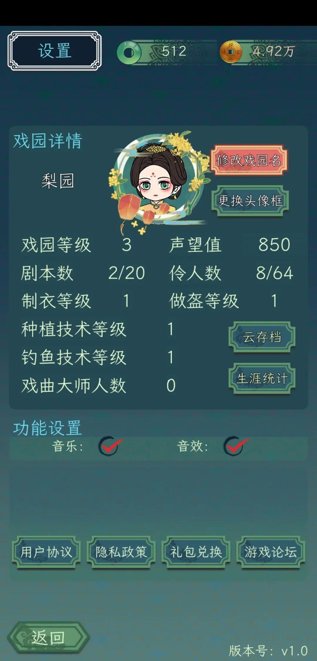 继承了一座戏园子游戏是免费的,金币资源都是不需要你担心了,在这里你需要的是不管的发展以及调整好你自己的庄园,天天享受到不一样的生活方式。个人感觉这个游戏有点复杂,我过了新手引导之后摸索了一个小时左右,估计这游戏不适合我,安排人手这方面设一个推荐就好了,我自己安排都是无厘头的,不知道哪个适合哪个位置,我又是那种安排一个位置那个人就一定要适合哪个位置的人 ,所以我把自己卡在了安排人手这方面。
