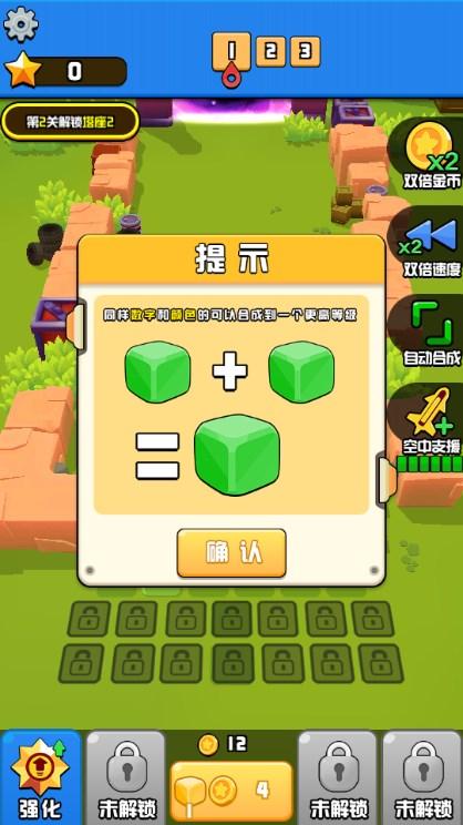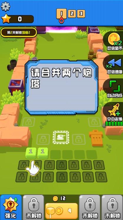 本游戏是一款以塔防为基础,融合合成放置的休闲生存游戏。合成炮塔,放置攻击,防御机械兽的进攻合成放置,高级炮塔,更高收益!超强技能,意大利炮,无情横扫,轰击BOSS!未来科技,卡片升级,火力无限,激情开炮!
