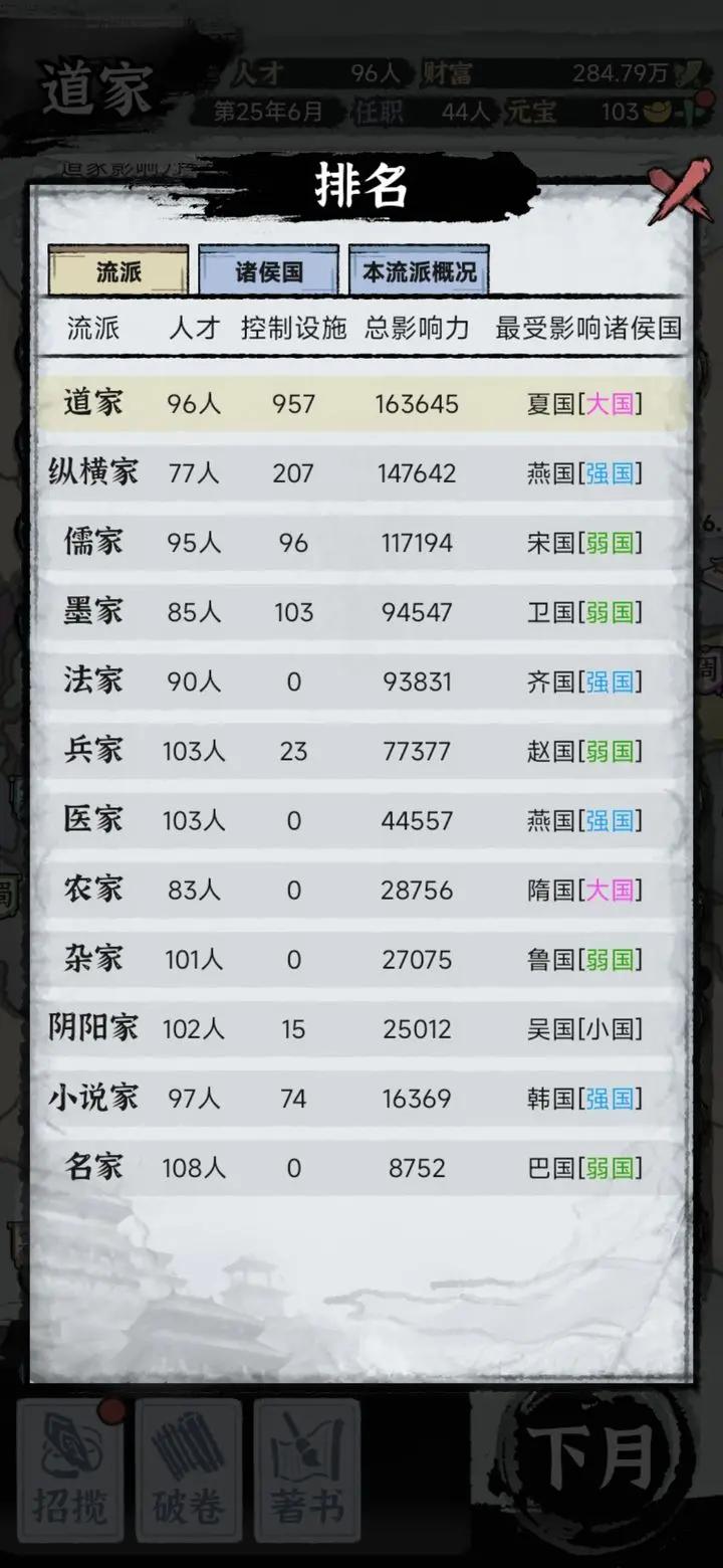 其中不论自己从各国招募的弟子,亦或者宣传学说增加自己在不同国家的影响力,亦或者身居要职,这些等等基本贯穿了游戏中的全部内容。