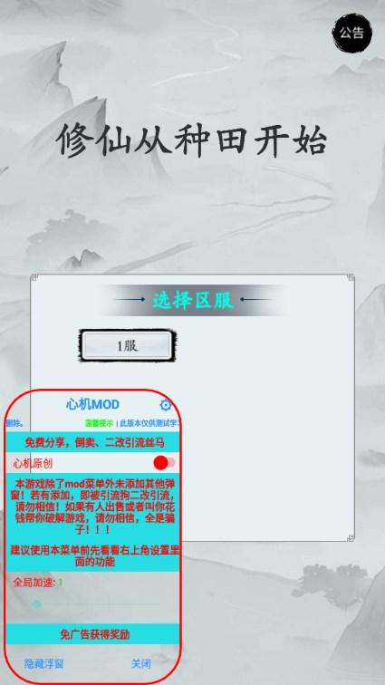 修仙从种田开始免广告获取奖励(com.xczxs.farmgod)是一个文字类型的模拟经营种田修仙塔防类型的游戏,这个游戏中你需要复兴你的宗门,从种田开始,获取各种农作物,出售获取道具提升你的属性,游戏解锁免广告获取奖励。
