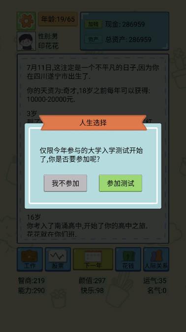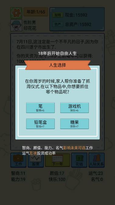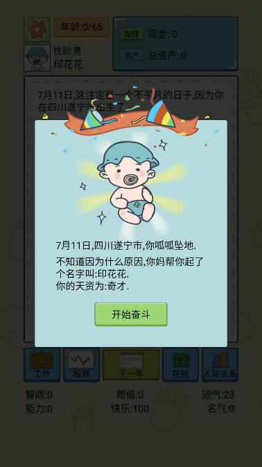 这是一款非常简单好玩的文字模拟养成游戏,玩家可以在这里体验中国式人生的成长模式,你可以从婴儿出生开始,不断地做出你的选择然后就会有不同的人生道具,非常好玩的体验!