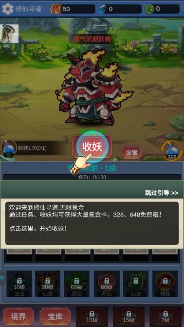 2.出现福利的时候直接看广告五倍奖励然后买灵石跟境界丹,提升境界能到多少到多少,境界越高打的越远