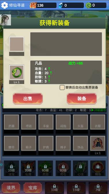 修仙寻道无限氪金清风mod内置作弊菜单版(com.Xuanxuan.xxsd)是一款类似于开箱子玩法的游戏,玩家通过开启宝瓶不断地获得各种神装,然后装备自己提升战斗力,非常耐玩的游戏!