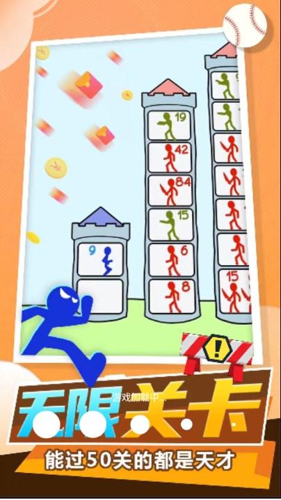 爬塔火柴人红包版(com.frfj.bc4bfrfjpthcrttfb.em.jysl)是一个爬塔游戏,这个游戏经常会出现在广告之中,和那个爬塔游戏是一模一样的,这个游戏玩法也很简单就是计算大小进行战斗,操作也简单,轻松领取各种红包,真实提现3毛。