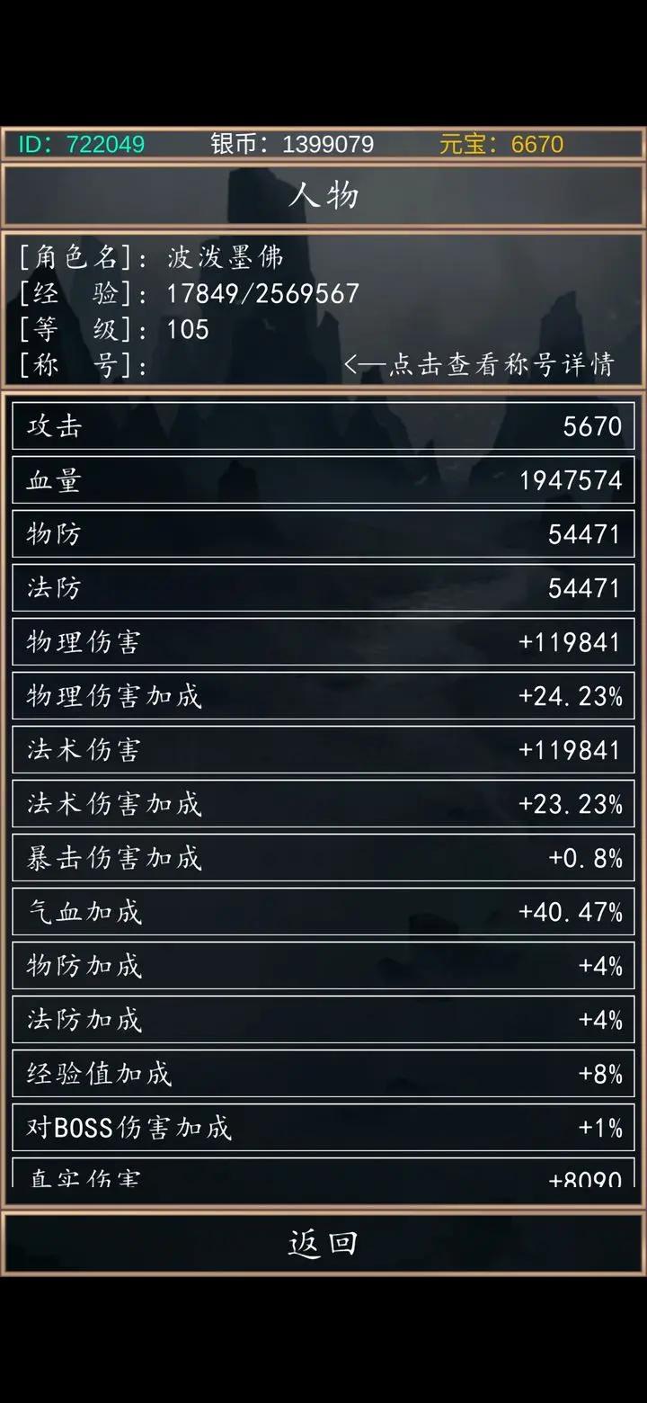 而且这图吧,就是个单机游戏,每天上线几分钟就行,靠挂机的资源不知道要挂到什么时候哦。我现在每天广告加签到,大概一天1万多元宝。提升好像只有套装,套装需要元宝买,总结就是无尽的挂机。所以我一直挂在100级地图,挂等级跟妖王。