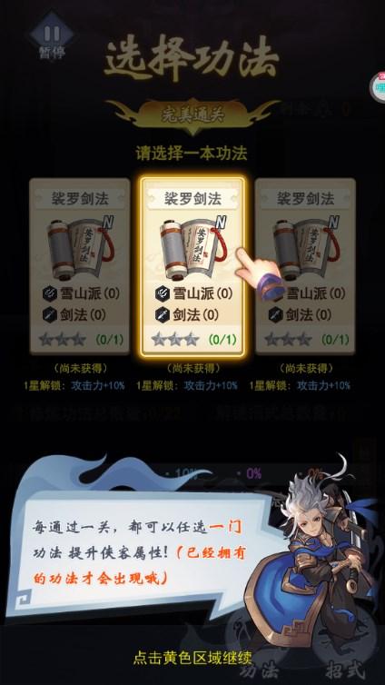 开始闯关:先尽量把想要的羁绊凑齐,其次就是升级功法(优先高品质),橙色功法一般升到2星也够用了
