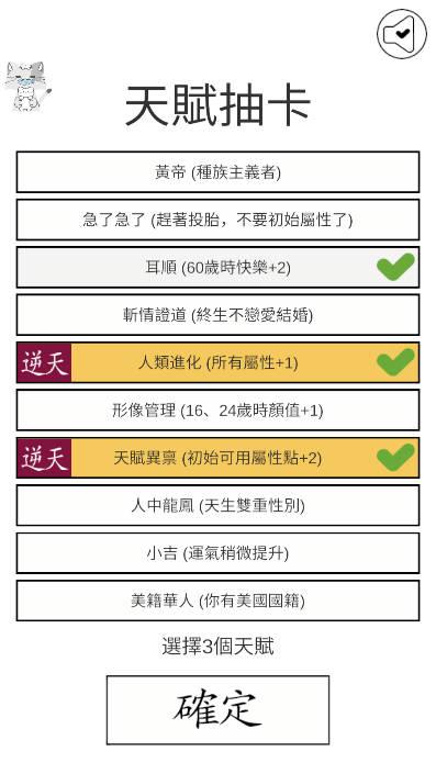 游戏一开始就是让你抽取属性,但无论是抽到什么逆天属性都只是令自己的人生过的久一点摆了,即便能够享受到相对成功的人生,玩家也不会感受到这个人生所带来的乐趣体验,因为游戏是以第三人称的视角来告诉你的一生经历,类似于解说者的形式来讲述内容,在这种情况下玩家根本不可能代入到剧情当中,甚至就像是在看一篇没有任何情感表达的论文一般,枯燥且乏味,总是以你来代称玩家,没有任何前戏铺垫以及逻辑思维,像是被ai设计出来的剧情,一丝的沉浸感都没有,又怎么会让玩家产生乐趣呢。