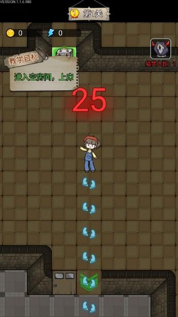 然后开始一局后,玩家需要首先需要做的就是在限定的时间内找个房间进去,然后关上门上床睡觉。