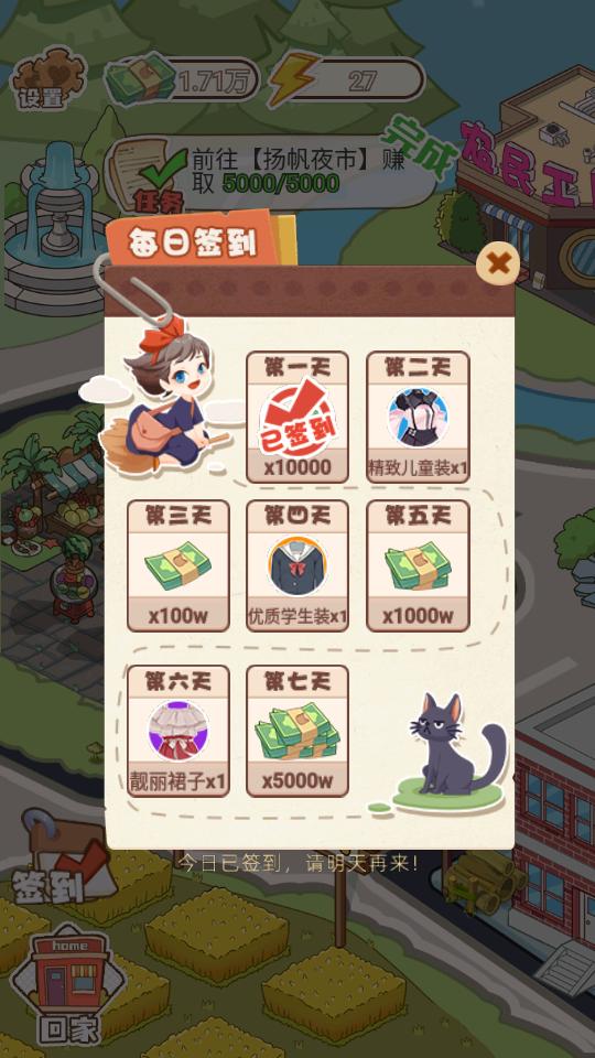 3.农民工网吧:创建并升级收银台、房间、电脑桌、电脑设备、零食柜、员工,还能产生离线收益。