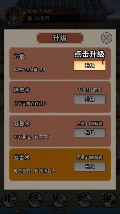 1.休闲点击 。玩家要当上一代大将军,点击你的团队去战斗,不停的刷宝收集更多装备和道具,挑战各路的英雄好汉。