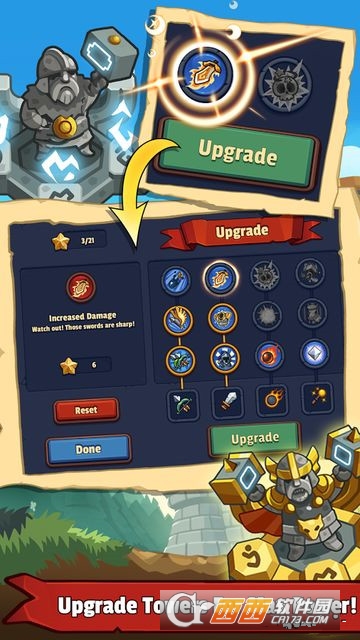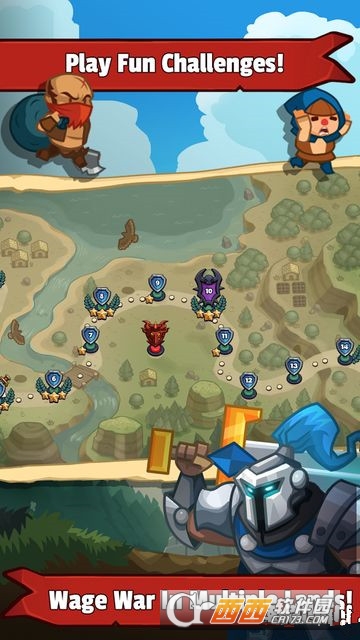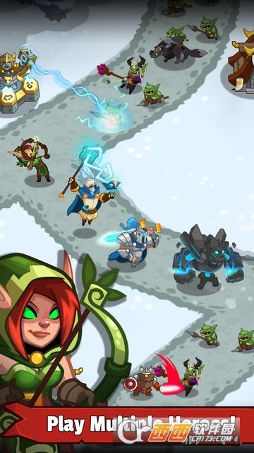 游戏中玩家可以在道路两旁建造不同的防御设施,用来防止敌人的入侵。除了建设和升级不同的防御塔之外,玩家还可以招募各种各样的英雄角色来帮助自己保护王国。