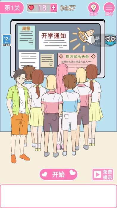 我的第一次小游戏(com.e8game.wddyc.ls2)是一款恋爱风格小游戏,在这里面有多个关卡进行挑战,在这里面有各种游戏类别分享,体验大学生的第一次恋爱小故事,通过一些细节通过关卡!