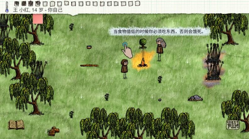 3、当你得食物值低时你必须吃东西,否则会饿死;