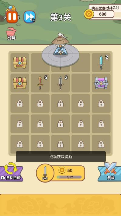 1)合成飞剑:用金币购买飞剑,相同等级飞剑可以合成更强的飞剑,等级越高飞剑伤害越高。