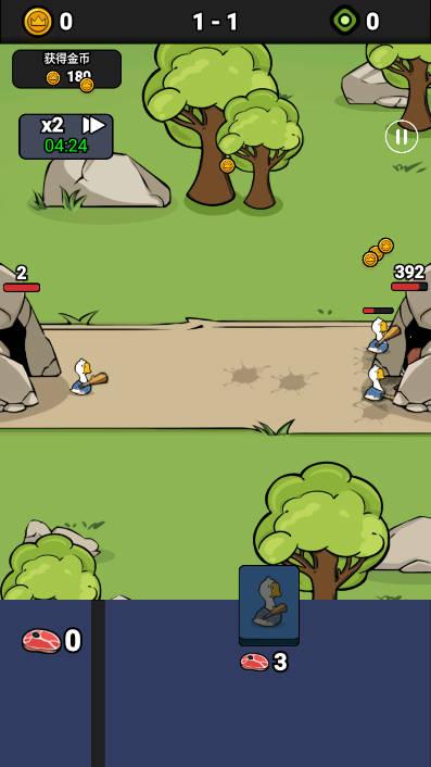 鹅鸭大战免广告无限金币版(com.goosevs.duckmeton.bigmet)是一款休闲策略塔防游戏,休闲战争玩法,通过不断地建造自己的军队来战斗,打败对面的鹅鸭,非常好玩,已经免广告和无限钞票!