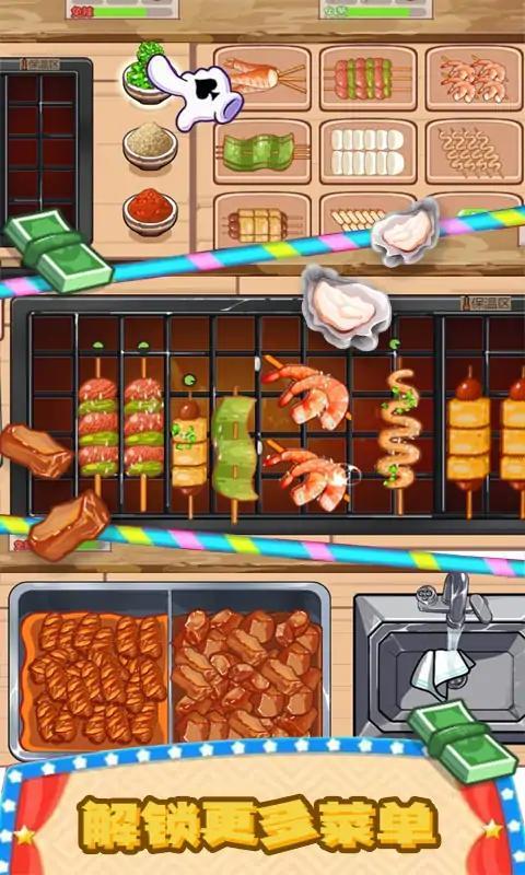 【美食餐厅模拟器】打造张灯结彩、热热闹闹的中华美食街,挑选烧烤卤肉等多种具有代表性的传统食物,让你感受充满中国味的场景氛围、体验丰富多样的美食烹调流程。 烧烤 香嫩鸡腿、爆汁香肠、肉沫蒜香茄子……各式各样的烧烤,从这里诞生。你快开始吧,食材准备完成。立刻启动烧烤架,烧烤咯。放置鸡腿和牛肉串,刷上油,避免烤焦。准备加调料,胡椒粉、烧烤酱、孜然粉……你根据客人要求一一添加。多样的调料,赋予烧烤多重滋味!看着茄子和鸡腿“滋滋”作响,你一定会觉得烧烤太好玩了。 卤肉 熬一锅浓浓的卤汁备用,处理好的鸡翅和卤肉备用。按照客人要求准备食物哦,不然客人会扔掉的哦!不停搅拌搅拌,美味就制造完成,交给客人收钱吧! 快来【美食餐厅模拟器】大厨生活,制作色香味俱全的美食吧!