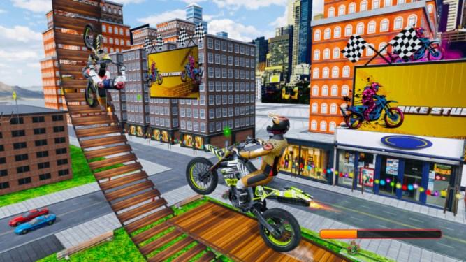 酷自行车特技游戏(Bike Stunt Game)是一个非常不错的特技自行车游戏,在这里你可以用自行车做任何特技效果,穿越游戏地图中的所有的障碍,游戏玩法简单,可以使用自行车走出各种的特技效果。